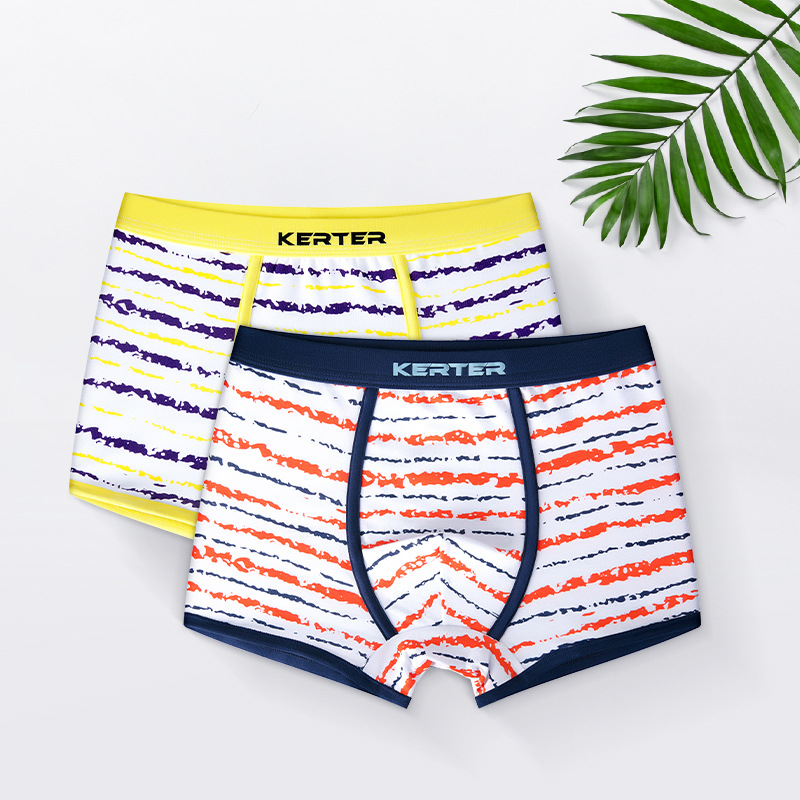 The underwear comes in two vibrant sets: Set 1 features a playful combination of orange and green stripes, while Set 2 boasts a lively mix of blue and yellow stripes. These colorful designs are sure to brighten up your child's wardrobe!