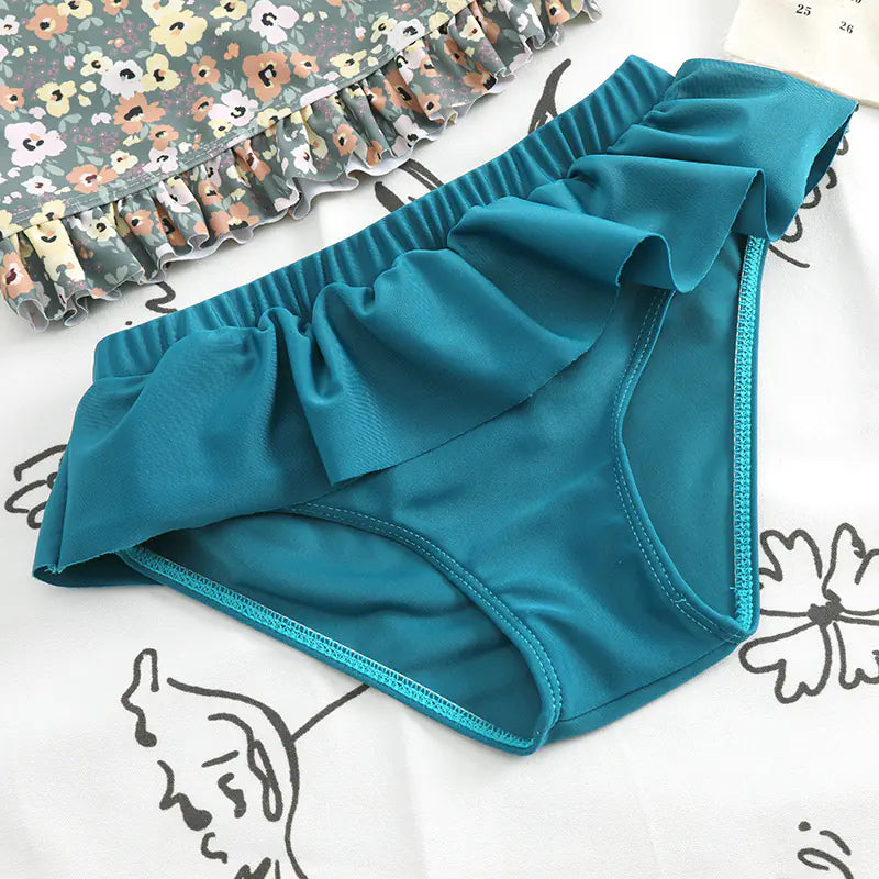 The swimsuit features a vibrant floral design that your child will love, combined with ruffled hems for a delightful touch of flair. Each swimsuit set includes a matching swimming cap, making it not only stylish but also practical for fun in the water!