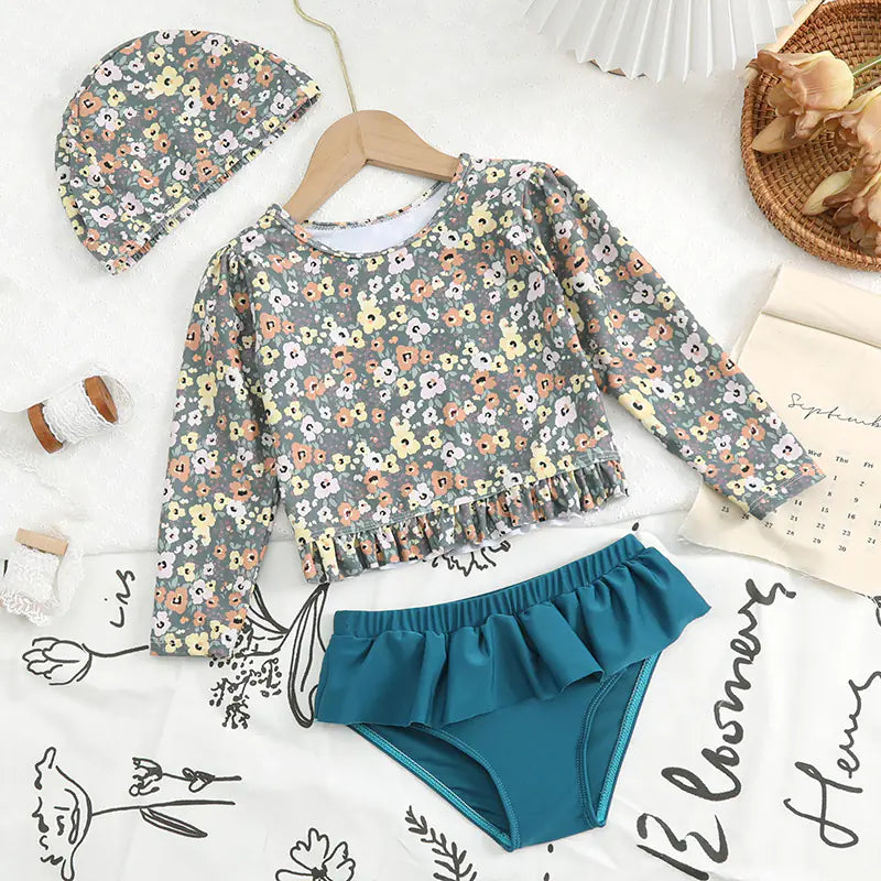 Get ready for summer adventures with our stunning Children's Swimsuit, designed specifically for girls aged 2-10 years! This long-sleeved floral split ruffled bikini is perfect for days spent at the beach or pool, ensuring your little one looks adorable while staying protected from the sun.