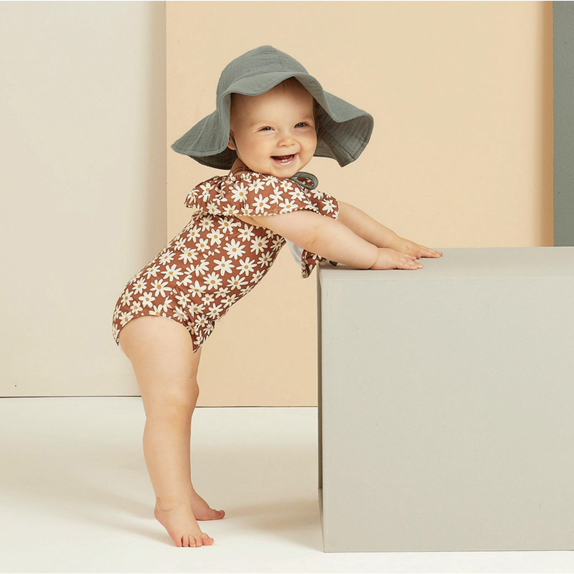 Each swimsuit comes complete with a matching hat, making it a stylish and practical addition to your child's summer wardrobe.